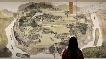 1月23日,游客在湖州吴兴的小西街西岸美术馆观赏年画美术作品。