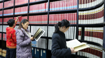2月19日,工作人员在泾县三希堂线装文化园藏书馆检查再造古籍善本的保存状况。