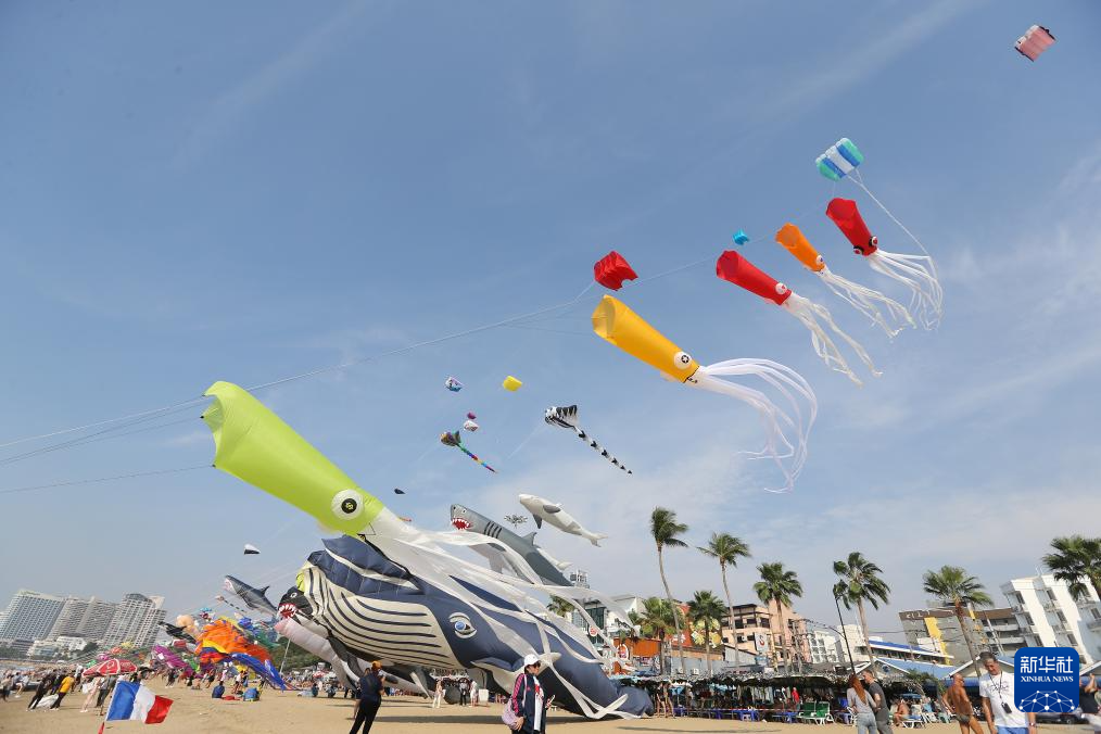 这是2月26日在泰国芭堤雅海滩上拍摄的风筝。