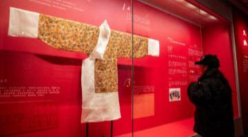 3月29日,观众在参观“如是莫高”敦煌艺术大展中展出的莫高窟第158窟的复刻版本。