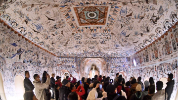 4月11日,人们在位于明斯克的白俄罗斯国家美术馆欣赏展品。