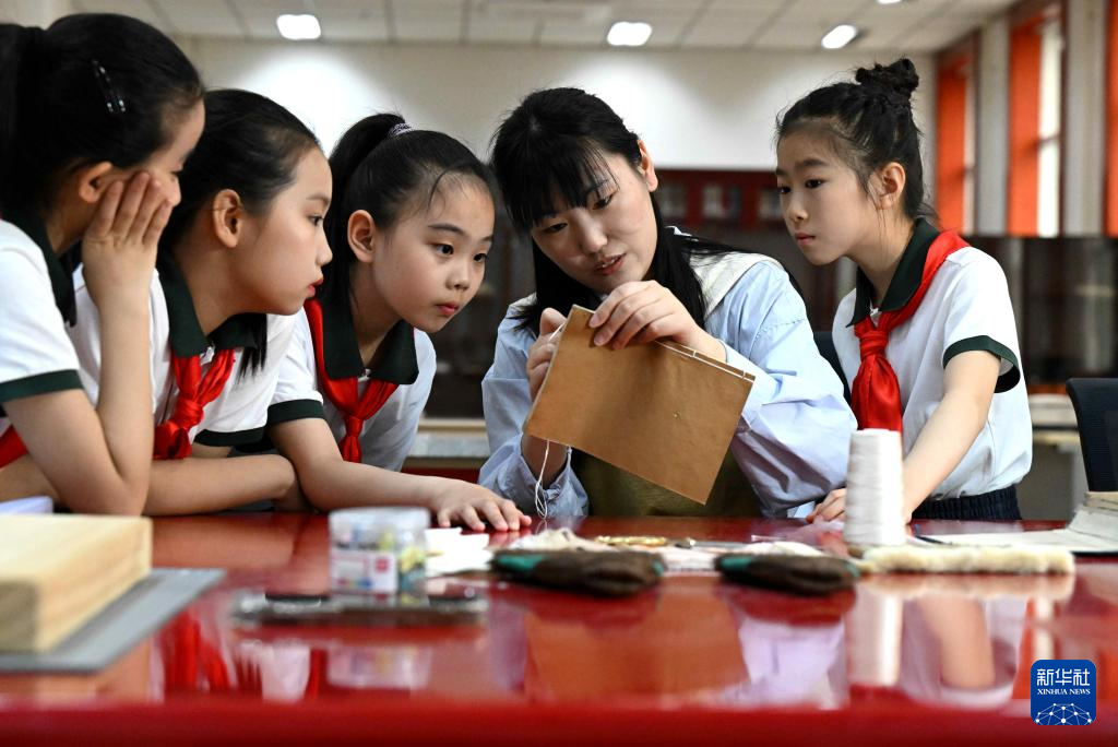 日前,河北省石家庄市图书馆推出“漫樱笺古韵——古籍保护课程进校园”活动,通过参观、讲座及手工制作等,带领学生沉浸式体验古籍修复技艺,宣传古籍保护知识。