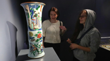 4月23日,参加论坛的嘉宾使用AR(增强现实)眼镜参观良渚博物院展品。