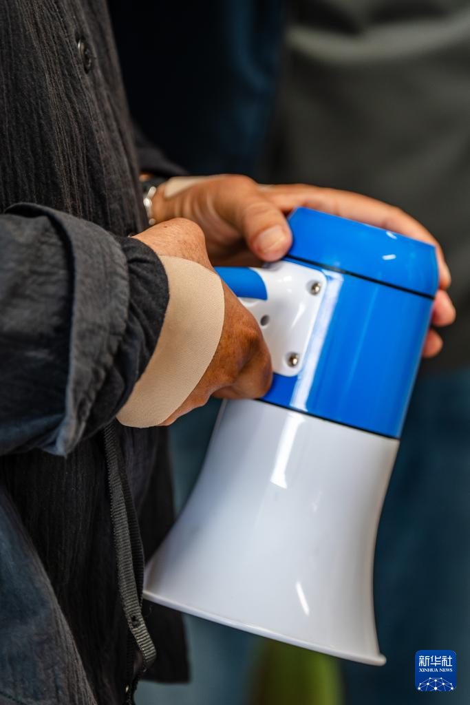 5月27日,张桂梅贴满膏药的双手握着新的小喇叭。