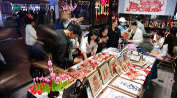 5月28日,在“西海2261·河湟文化大集”开集仪式上,市民购买剪纸文创产品。
