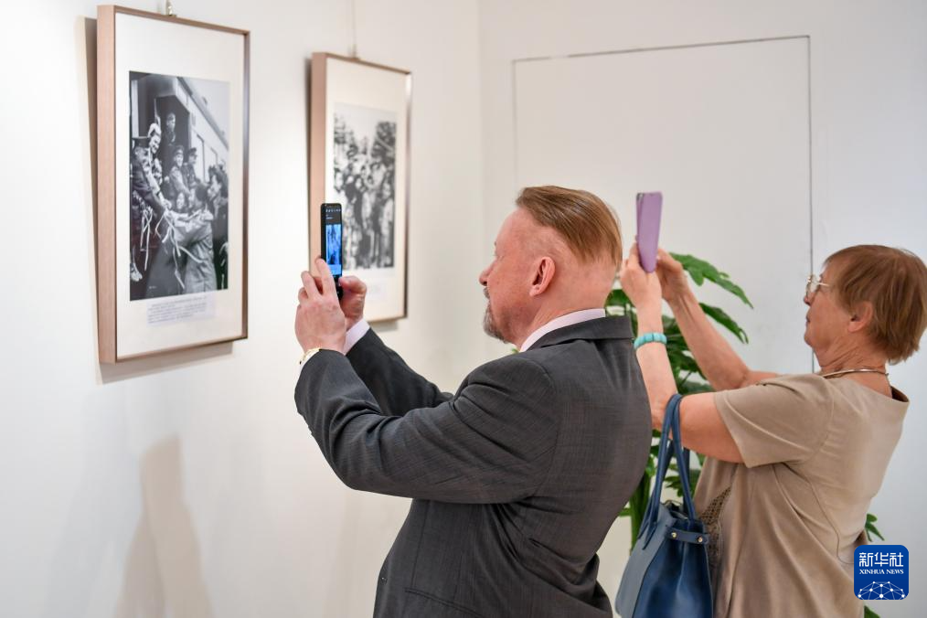 6月5日,在俄罗斯首都莫斯科,嘉宾参观纪念中国人民抗日战争暨世界反法西斯战争胜利80周年图片展。