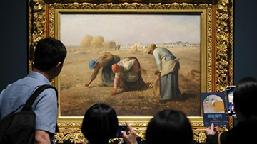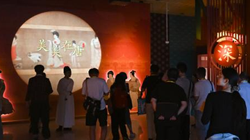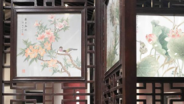 6月20日,参观者在呼和浩特职业学院美术馆观赏剪纸作品。
