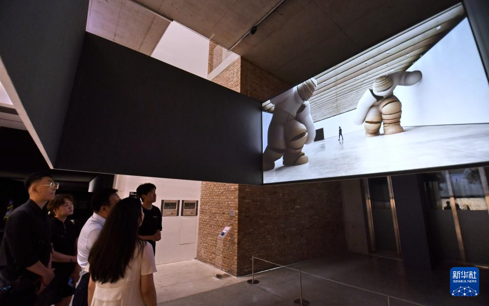 6月29日,市民在北京798艺术区参观数字影像艺术作品。