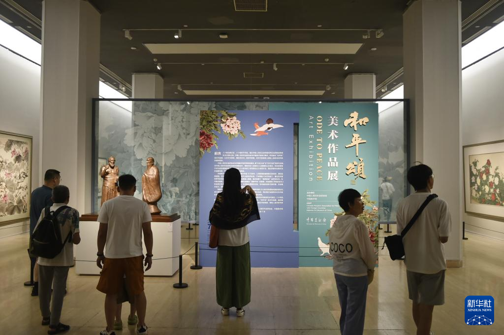 当日,为纪念中国人民抗日战争暨世界反法西斯战争胜利80周年,由中国人民对外友好协会与中国美术馆共同主办的“和平颂”美术作品展在北京中国美术馆开幕。