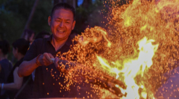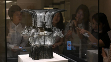 西藏博物馆工作人员将《永乐十一年封斡喃渴烈思巴为辅教王诰书》徐徐展开(5月20日摄)。