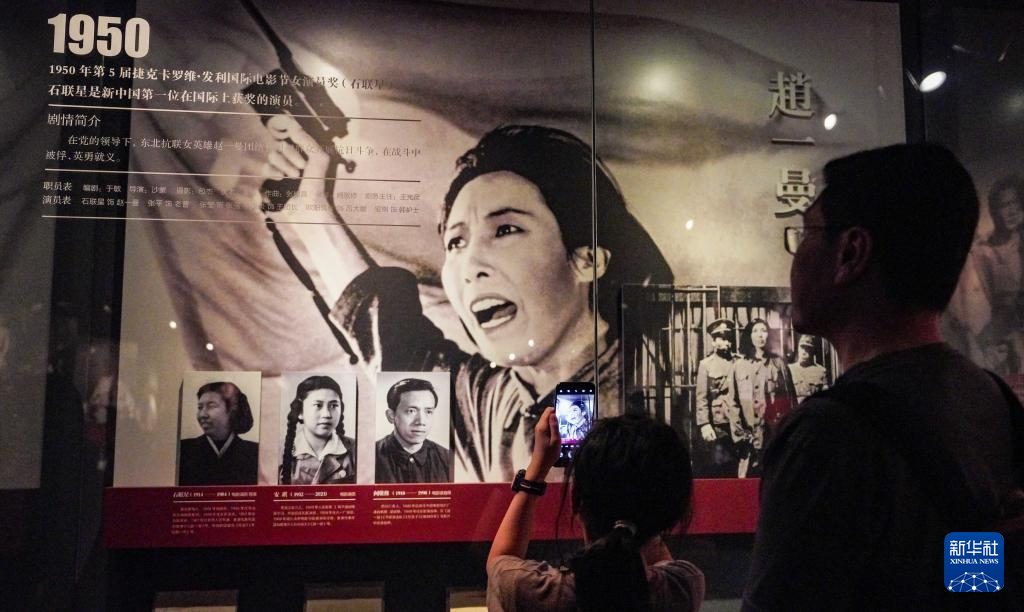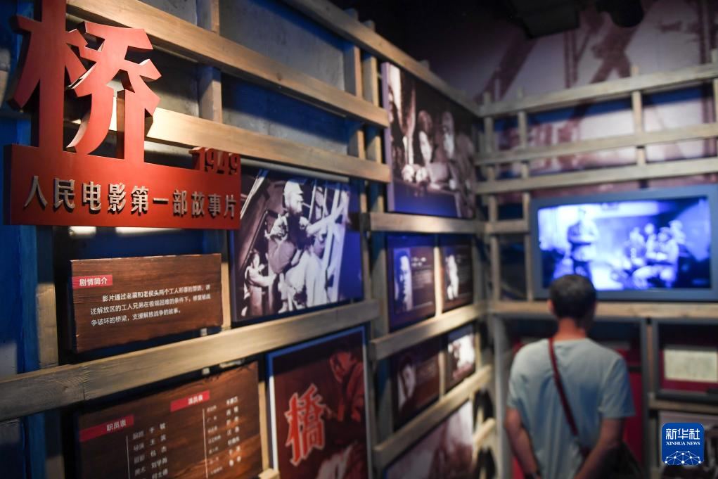 8月7日,游客在长影旧址博物馆观看电影歌舞剧《白毛女》。