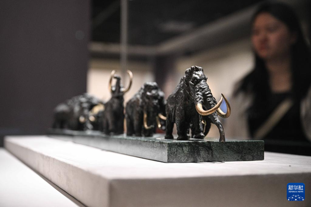 8月13日在海南省博物馆拍摄的“俄罗斯当代艺术大师经典作品展”展出的雕塑《猛犸象群》。