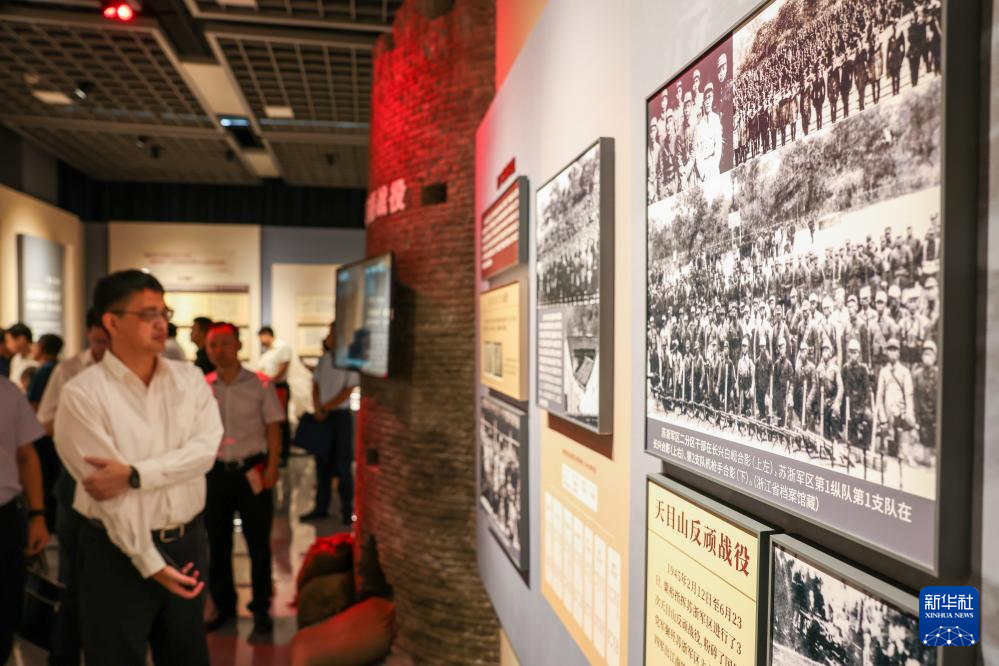 8月27日,观众参观“华中长城 铁军忠魂——长三角地区新四军档案史料展”。