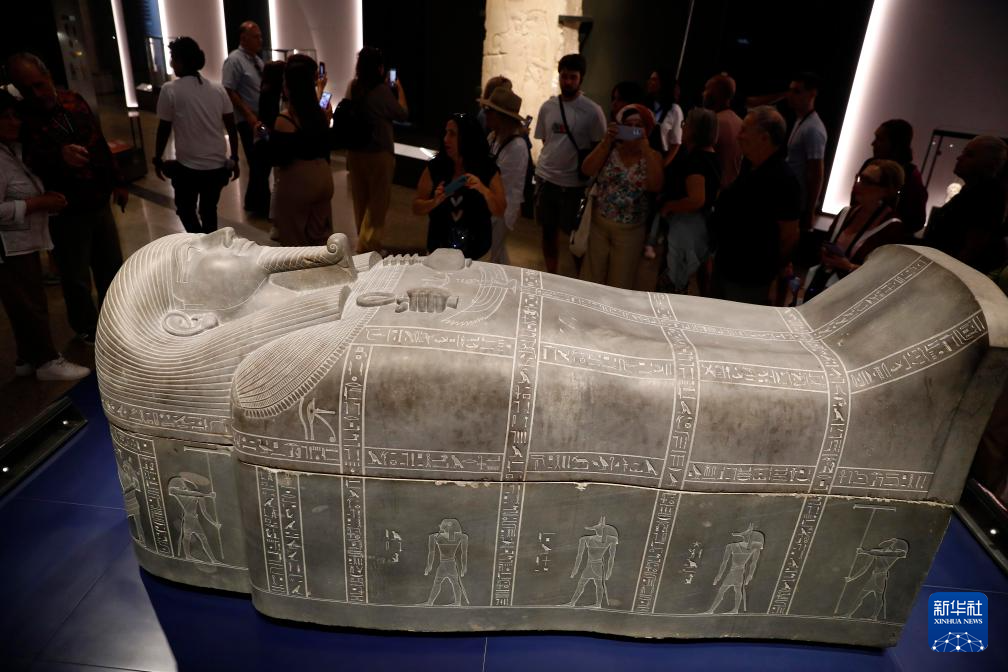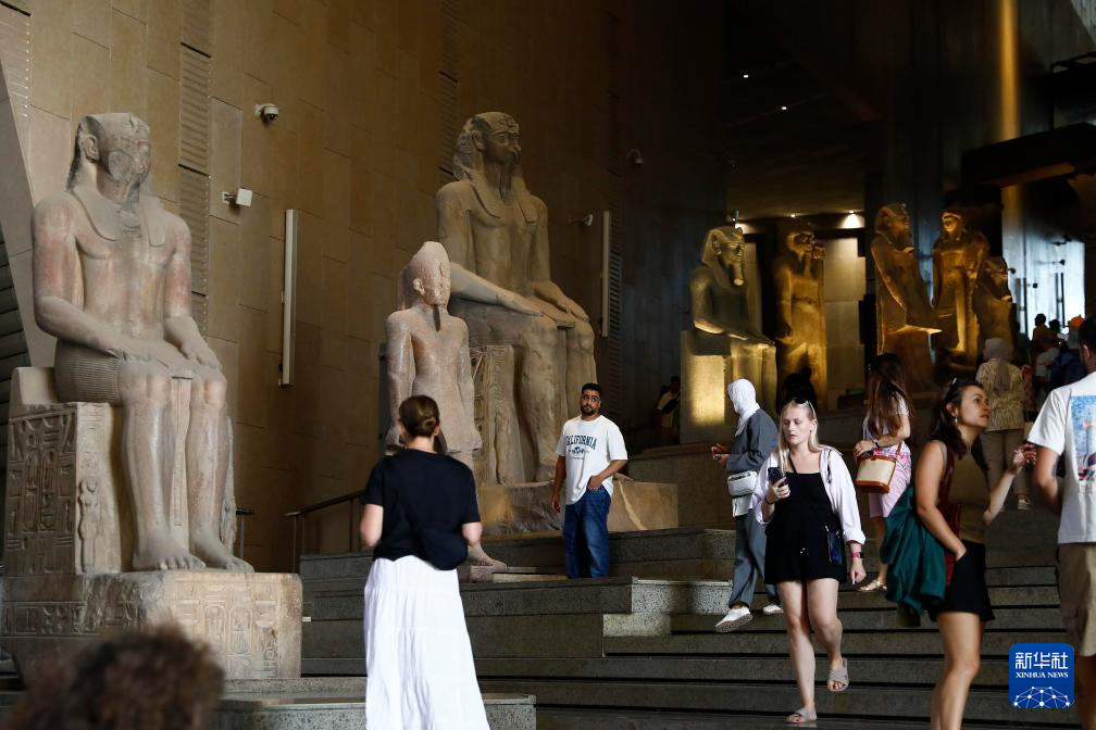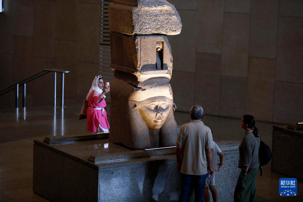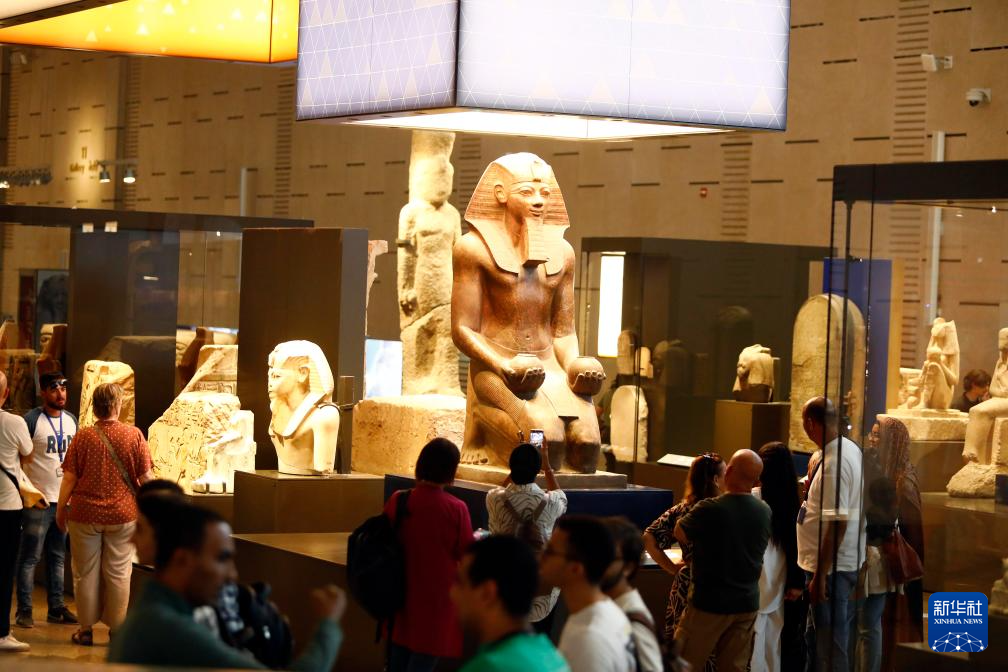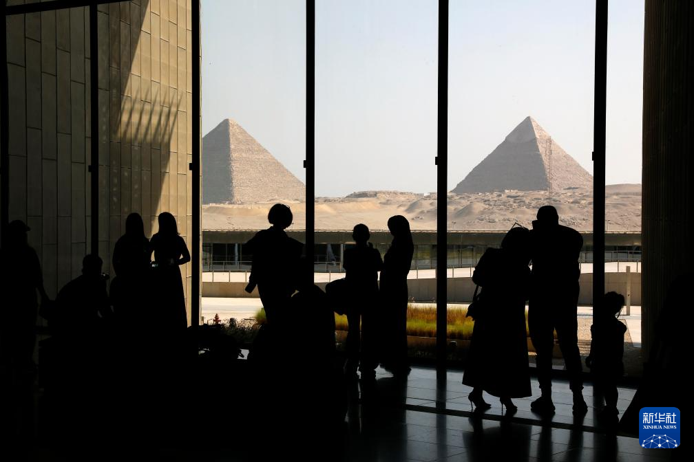 10月14日,游客在位于埃及吉萨省的大埃及博物馆参观。