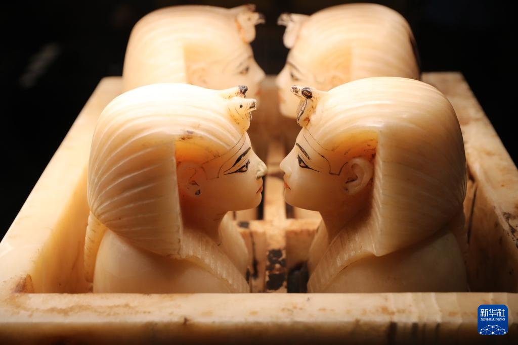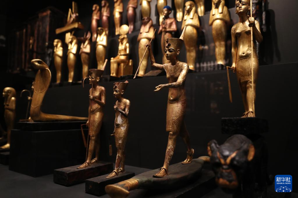 这是11月4日在埃及吉萨的大埃及博物馆法老图坦卡蒙展馆拍摄的展品。