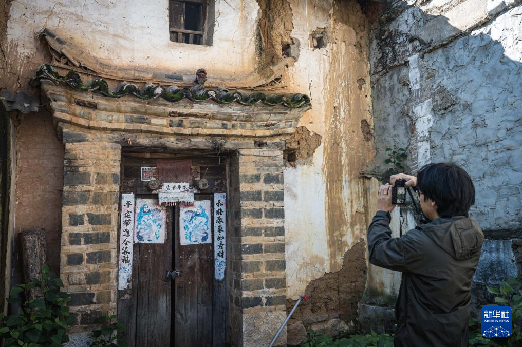 11月12日,张航在昆明市海晏村收集瓦猫影像资料。