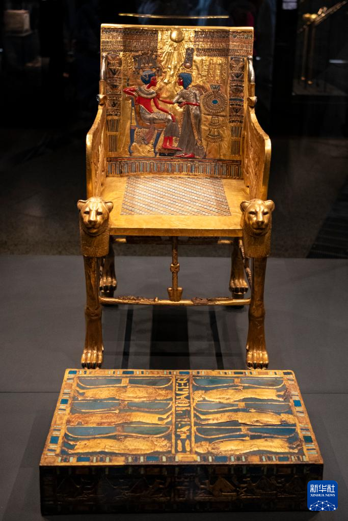 这是12月20日在埃及吉萨的大埃及博物馆拍摄的展品。