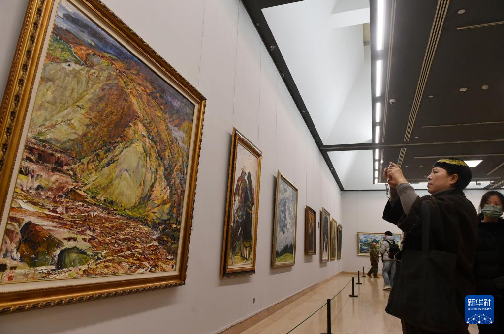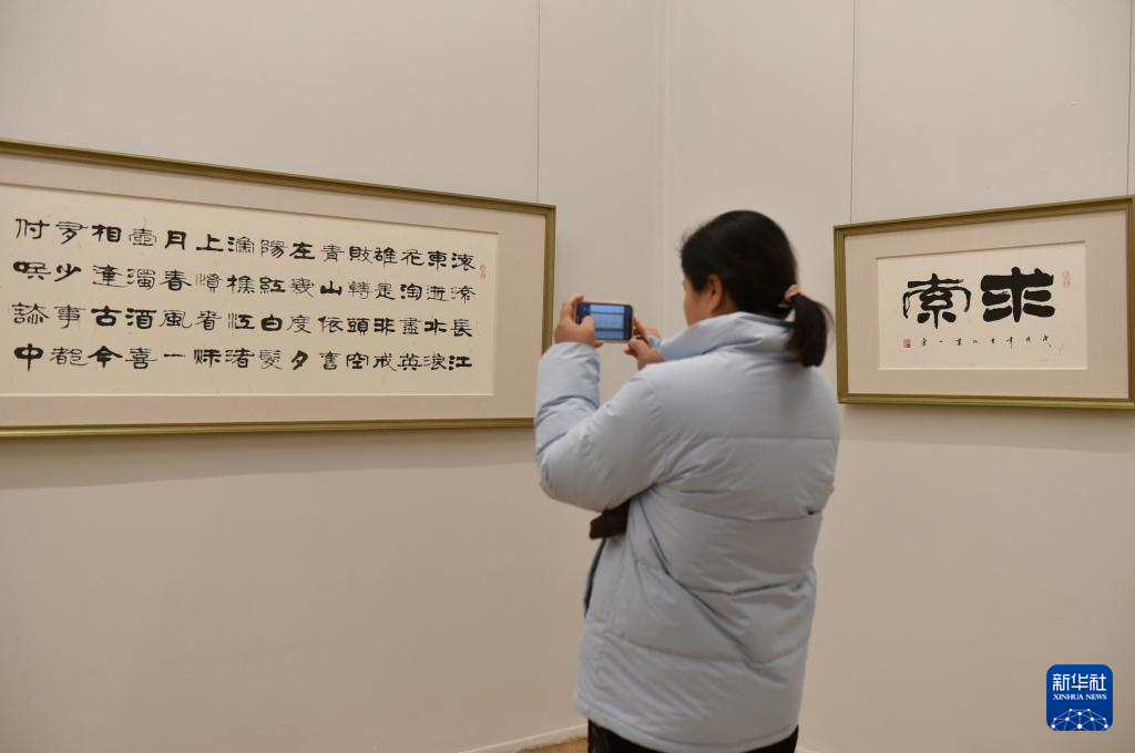 12月21日,参观者在中国美术馆拍摄展出作品。