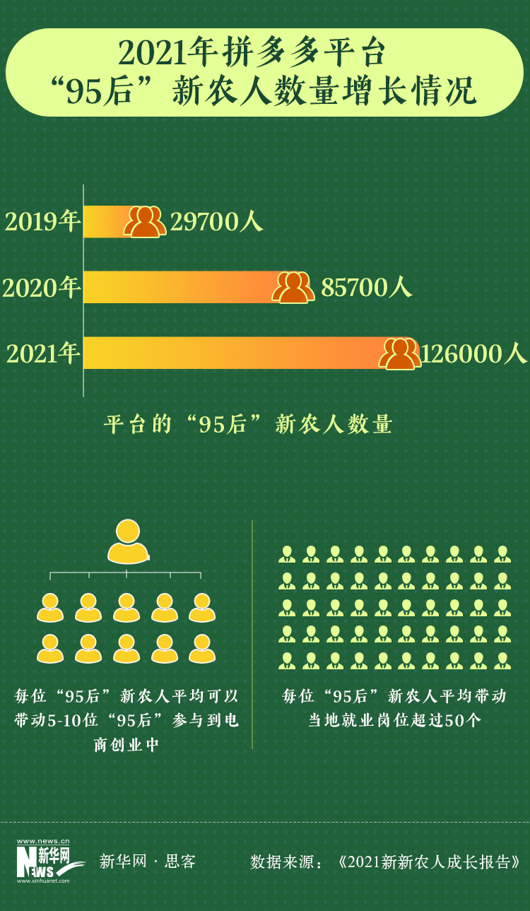 像张宇浩这样的“95后”新农人不在少数。2021年,拼多多平台发布《2021新新农人成长报告》,聚焦“95后”新农人这一近年来快速增长的群体。该报告认为,“95后”新农人普遍具备本科、大专学历,其中不乏名校毕业生、海外留学生,95%以上的“95后”新农人均为返乡创业的“农二代”“果二代”“批二代”。在创业过程中,“95后”新农人更加注重公司经营和团队管理,多采用“合伙人制度”,并擅长整合产业上下游。