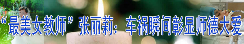 車禍瞬間挽救學(xué)生導(dǎo)致高位截癱的黑龍江省29歲女教師張麗莉,被網(wǎng)友稱贊為“最美女教師”。連日來,張麗莉的感人事跡激發(fā)起社會各界的愛心傳遞,舍己為人、挺身向前的奉獻(xiàn)精神正成為中國年輕一代道德價(jià)值體系中的火炬和航標(biāo)。 張麗莉,女,1983年生,大學(xué)本科,黑龍江省佳木斯市第十九中學(xué)的語文教師。2006年,她從大慶師范學(xué)院文學(xué)院03級本科班畢業(yè)后,分配到佳木斯市第十九中學(xué)任教。她在2012年5月8日的交通事故中,為救學(xué)生而受重傷,致使雙腿截肢。2012年5月15日、5月16日,張麗莉獲“全國五一勞動獎?wù)隆薄⑷珖思t旗手等榮譽(yù)稱號。