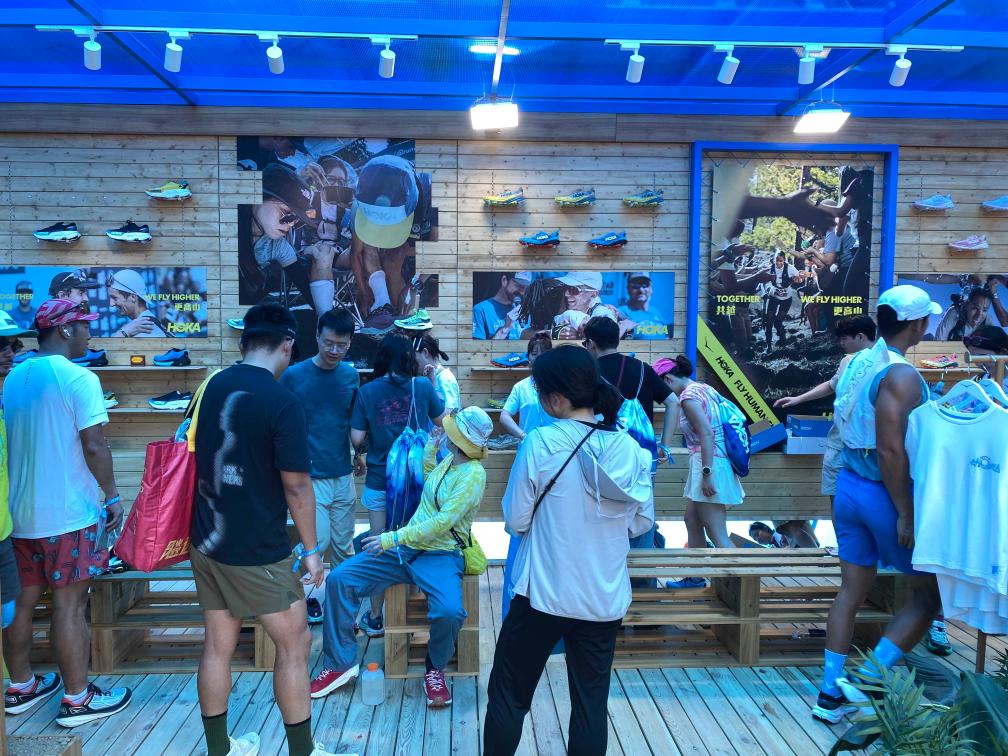 活动现场,来自不同地域的选手相互交流经验。在场地内的购物区,许多跑者选购心仪的商品。