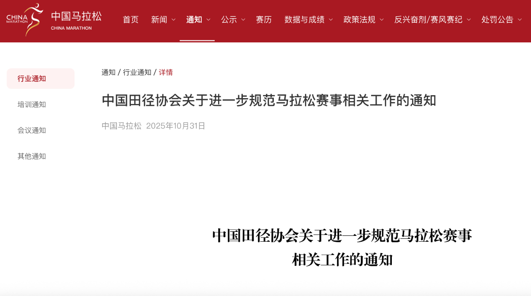 新华网北京10月31日电 为进一步规范马拉松赛事相关工作,10月31日,中国田径协会发布《关于进一步规范马拉松赛事相关工作的通知》(以下简称《通知》),再次明确了赛事组织管理的相关事项。此外,协会还于30日公布了2025年11月至12月全国各省区市马拉松赛事举办目录。