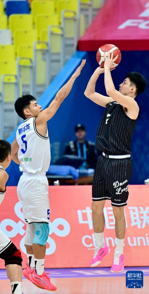 12月10日,北京队球员夏盛业(右)在比赛中投篮。