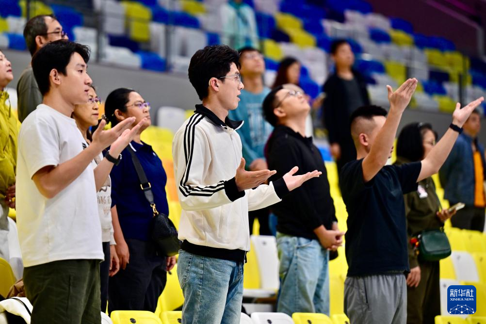 12月10日,在比赛开始前,观众用手语“演唱”国歌。