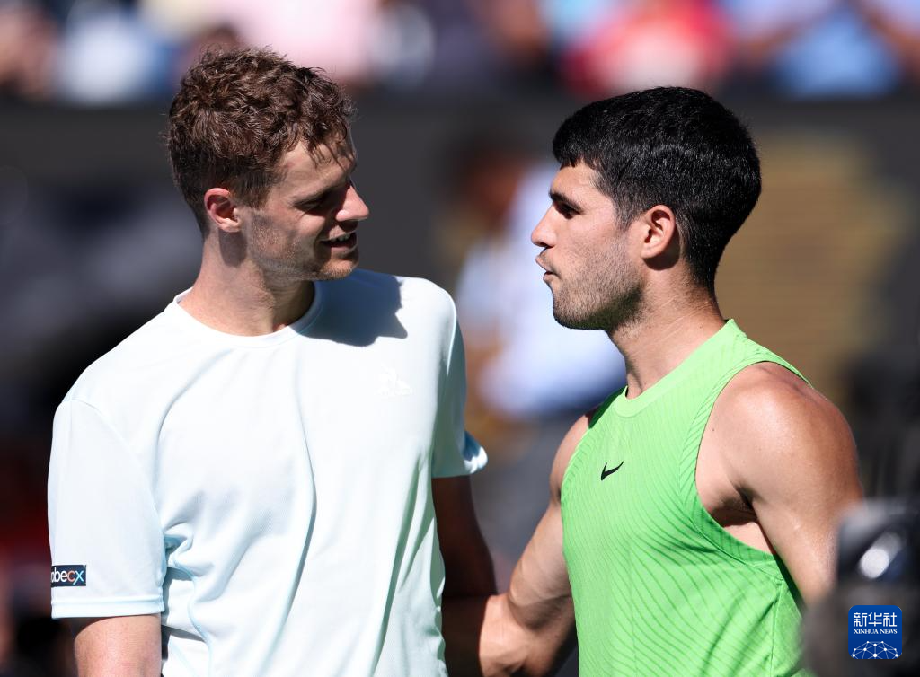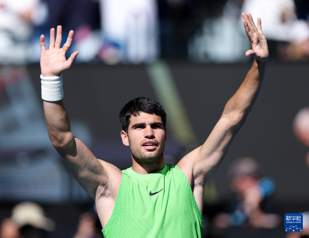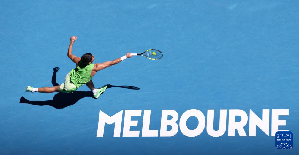 当地时间1月21日,在墨尔本进行的2026年澳大利亚网公开赛男单第二轮比赛中,西班牙选手阿尔卡拉斯3比0战胜德国选手汉夫曼,晋级下一轮。