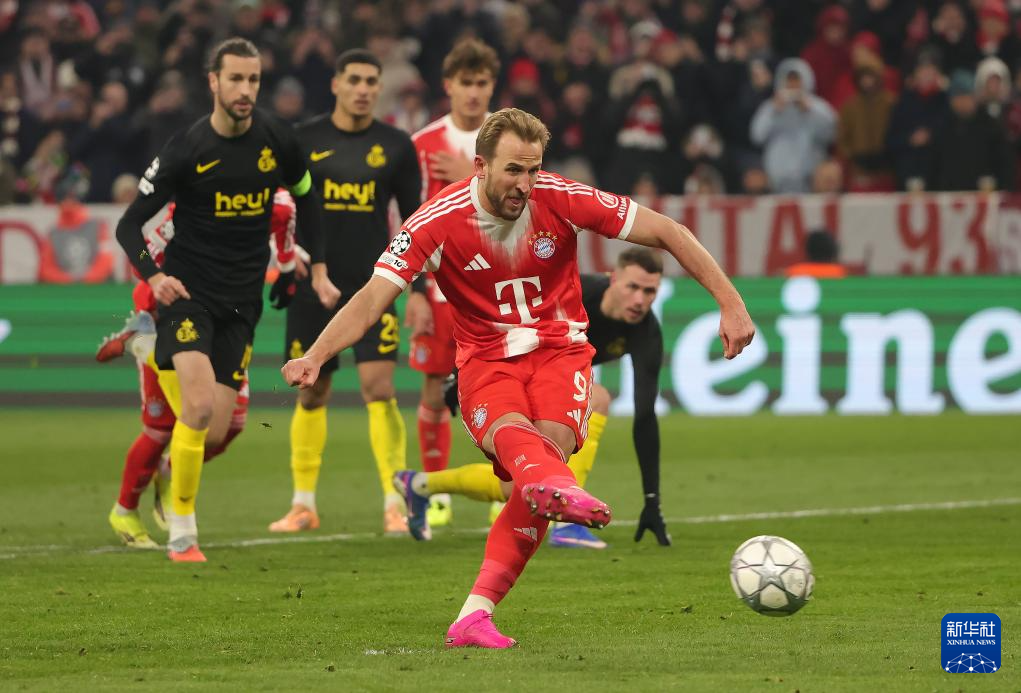 1月21日,拜仁慕尼黑队球员凯恩庆祝进球。
