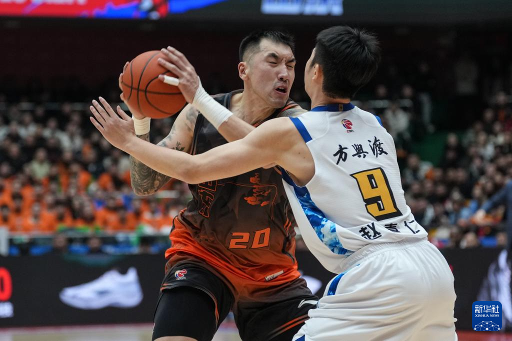 1月25日,浙江方兴渡队球员赵嘉仁(右)在比赛中突破。