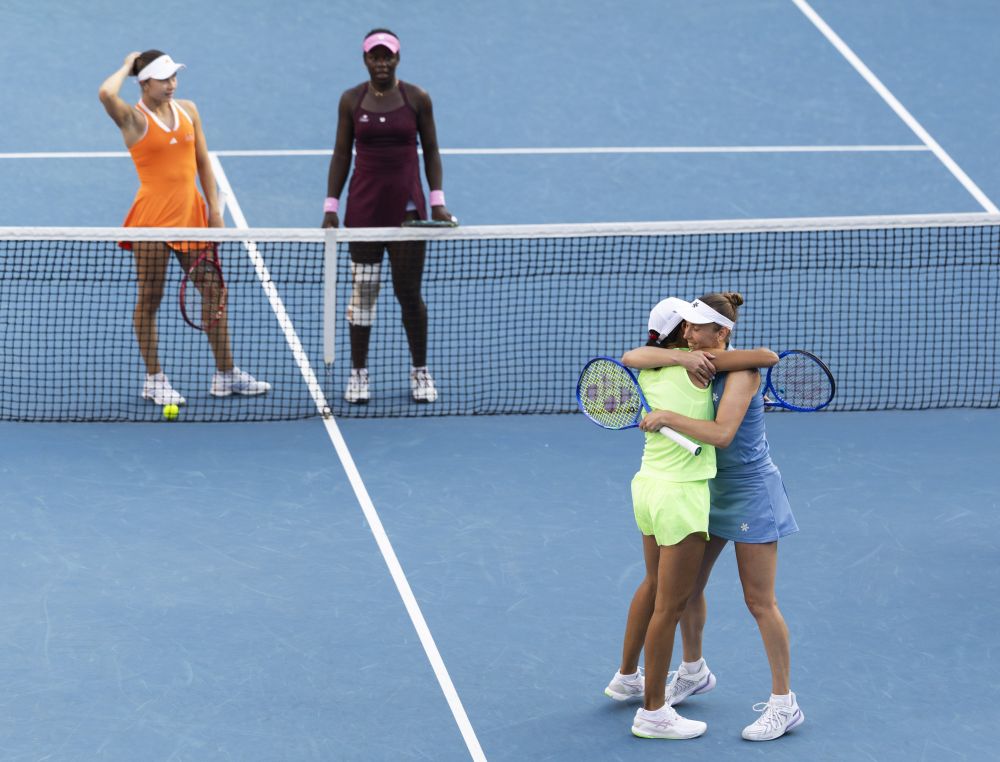 女双赛场,4号种子张帅/梅尔滕斯(比利时)与约维奇(美国)/姆博科(加拿大)鏖战三盘,以7:5、4:6、7:6(10)险胜对手,晋级16强。她们将与美国组合巴普蒂斯特/斯特恩斯争夺八强席位。