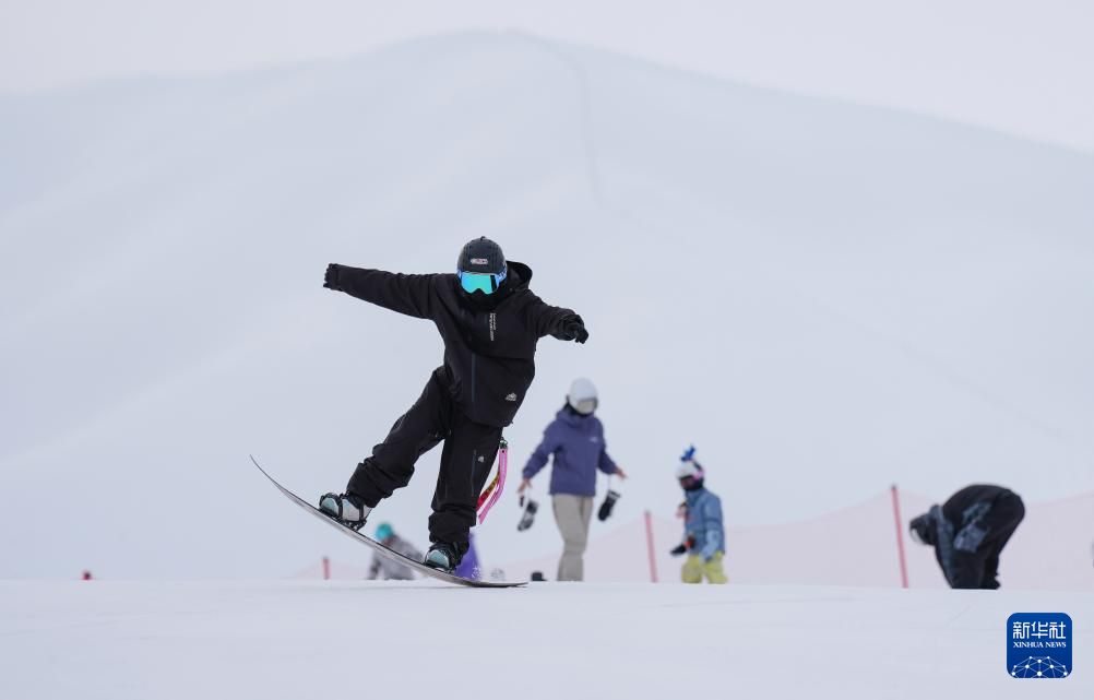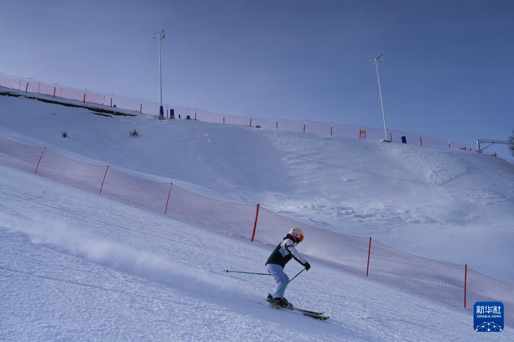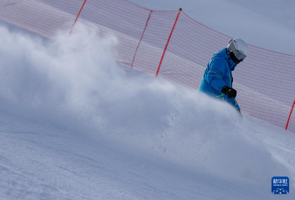 1月25日,雪友在新疆那拉提哈茵赛滑雪度假区滑雪。