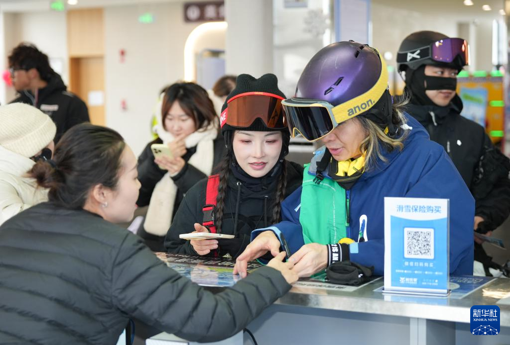 1月25日,雪友在新疆那拉提哈茵赛滑雪度假区办理雪票。