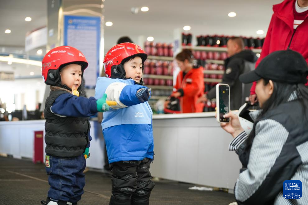 1月25日,小朋友在新疆那拉提哈茵赛滑雪度假区合影。