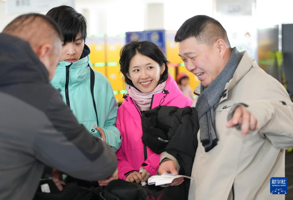 1月25日,雪友在新疆那拉提哈茵赛滑雪度假区领取雪具。