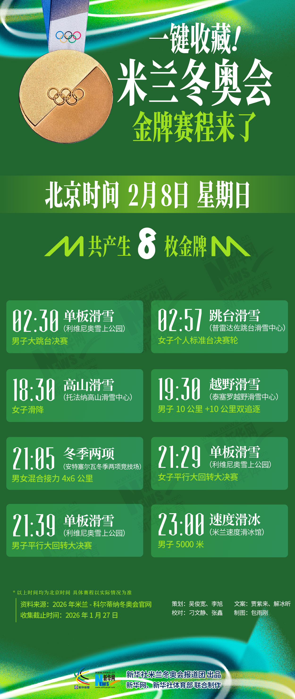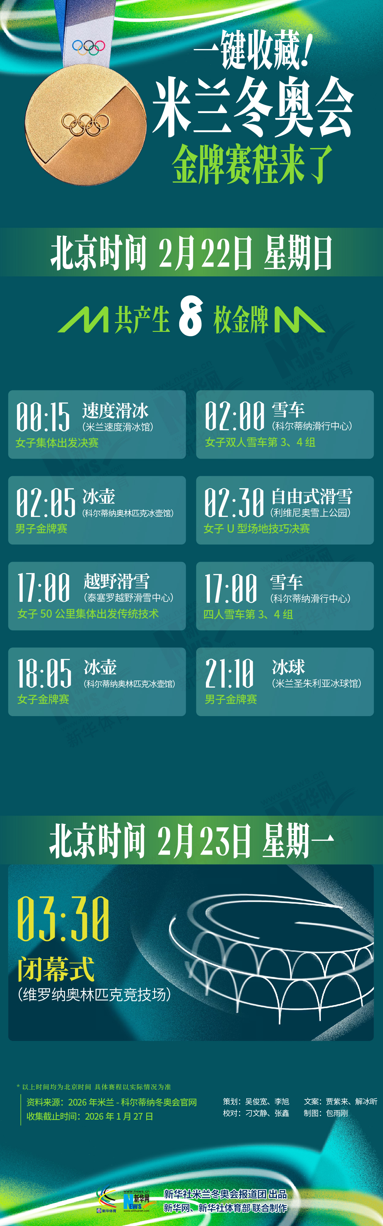 米兰冬奥会战幕将启,冰雪健儿已集结完毕,蓄势待发。不想错过每一个“金”彩夺目的巅峰对决?快收藏这份新华体育为你整理的米兰冬奥会金牌赛程,助你精准观赛!