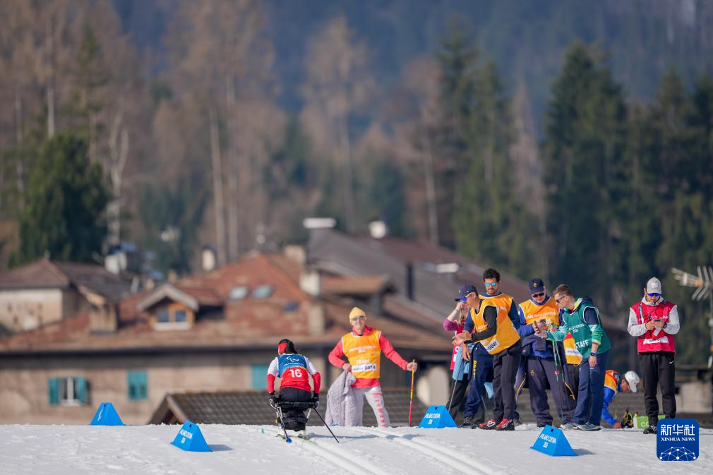 当地时间3月11日,米兰-科尔蒂纳冬残奥会越野滑雪女子中距离(坐姿)比赛在意大利泰塞罗举行。