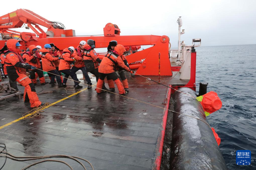 11时许,任健收起释放设备暂停搜索。考察队决定,待下一项目完成后,“雪龙2”号晚上再回来做最后的尝试。
