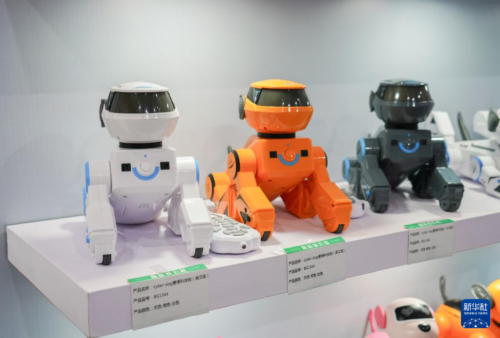 这是10月23日在广东汕头举行的第24届汕头·澄海国际玩具礼品博览会上拍摄的AI玩具狗。