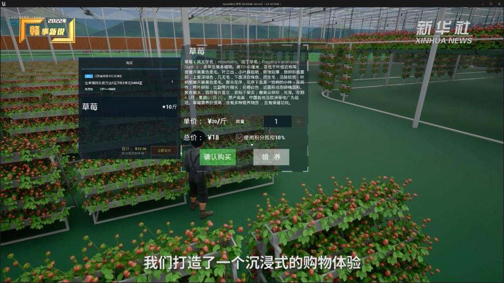 在虚拟现实的世界里既可以搞农业科研,也可以“种菜”“买菜”。在沉浸式的购物体验中,每个人都可以选择一套装扮,跟数字人逛农场,点击摄像头就能看到生产实景,既可购买、也可领养,购买后送货到家。