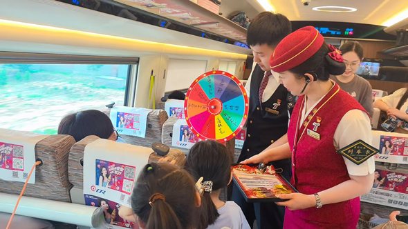 面对科技浪潮,李文灵积极探索“科技+服务”新模式。她利用列车交互系统提前调取旅客信息,为老年旅客、母婴旅客提供前置服务;通过大数据分析优化儿童读物角设置、调整商务旅客餐食配送时间,让服务更精准。同时,她始终坚守人文关怀,春节送福字春联、母亲节递鲜花、晚点时耐心安抚,让科技与温情在车厢交融。