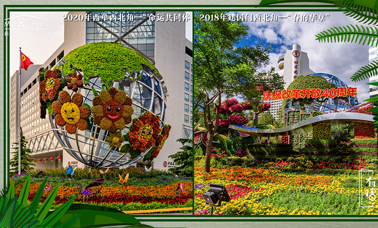 花壇的創新包括花材的創新,新花材的應用成為設計師的重要任務。我這幾年經常來往于云南、廣西邊遠山區之間,親眼目睹了百姓脫貧致富的經歷。當地百姓從單一的農作物耕種到種植果蔬再到種植花卉,其中彩花矮化的三角梅就是最受歡迎的花卉品種。2018年我們在西單西北角“幸福生活”花壇里用三角梅設計了一棵繽紛的花樹,造型自然、色彩斑駁、栩栩如生,深受大家的喜愛,被百姓評為“最美花樹”,這極大地激勵著我們用新興花材搞設計。今年的花壇依然采用了來自偏遠山區的三角梅,這對于決勝全面小康具有非凡的意義。