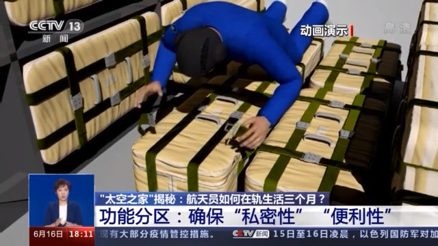 據了解,生活區內有獨立的睡眠區、衛生區、鍛煉區,還配有太空廚房、就餐區和睡眠區。