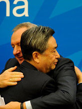 共同社社長兼總編輯石川聰在主席團會議上發(fā)言