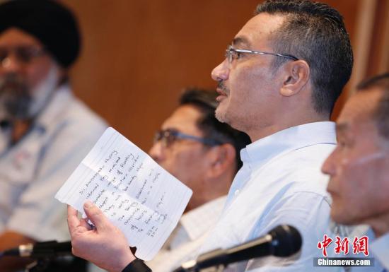 3月22日,馬來(lái)西亞官方在吉隆坡召開(kāi)的新聞發(fā)布會(huì)即將結(jié)束之時(shí),馬代理交通部長(zhǎng)希沙姆丁·侯賽因突然拿出一個(gè)字條對(duì)在場(chǎng)記者說(shuō):“我剛從中國(guó)駐馬來(lái)西亞大使館得到消息,中方衛(wèi)星在南印度洋海域發(fā)現(xiàn)了一個(gè)大型漂浮物,可能與失聯(lián)的MH370航班有關(guān)。”中新社發(fā) 劉關(guān)關(guān) 攝