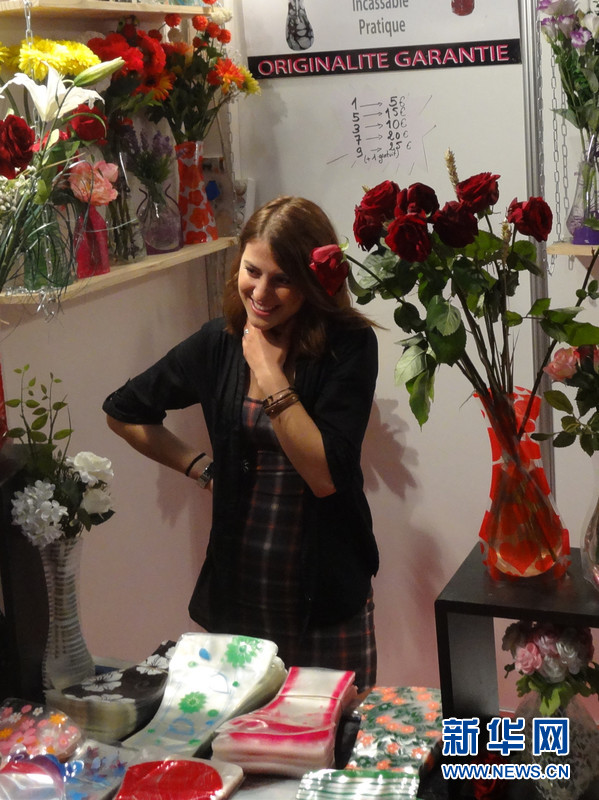????一位參展的女士在現(xiàn)場接受新華社采訪時表示,她帶來的展品各種樣式和顏色的花瓶,這些花瓶其實是用質(zhì)地較硬的塑料袋制成。不用的時候可以壓扁便于保存,將水灌滿后就是個花瓶,不但很漂亮,而且很穩(wěn)定。