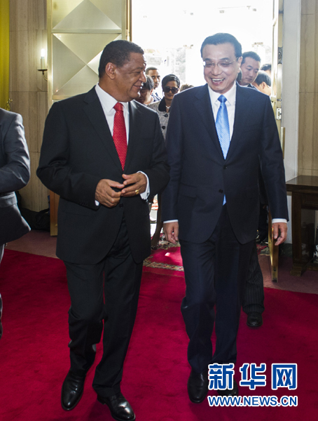 5月6日,中國國務院總理李克強在亞的斯亞貝巴國家宮會見埃塞俄比亞總統(tǒng)穆拉圖。新華社記者王曄攝