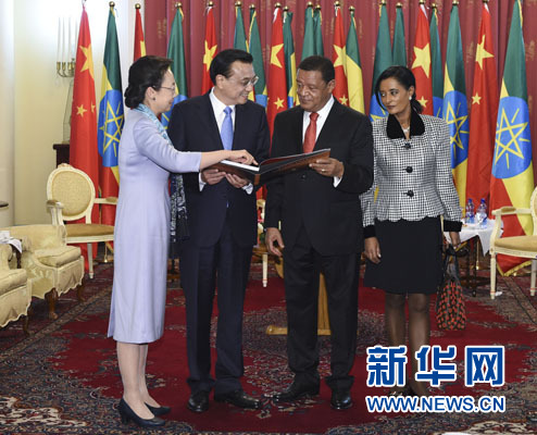??? 這是會見結束后,李克強總理向穆拉圖總統贈送介紹北京大學的畫冊。穆拉圖總統年輕時曾在北京大學留學。 新華社記者李學仁攝