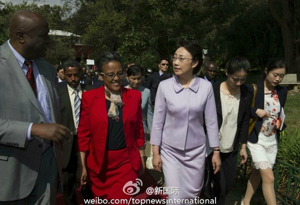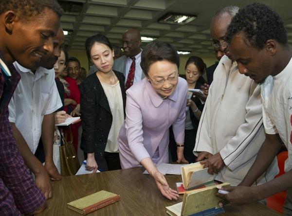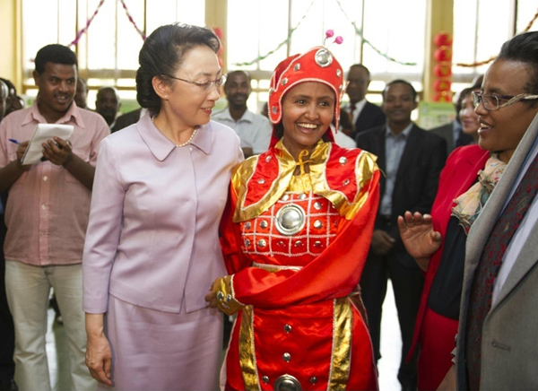 ????新華網(wǎng)北京5月6日電 據(jù)新華社“新國(guó)際”微博報(bào)道,李克強(qiáng)總理夫人程虹5日在埃塞俄比亞總理夫人羅曼·塔斯法耶的陪同下參觀了亞的斯亞貝巴大學(xué),觀摩漢語授課,與學(xué)生們交流,觀看學(xué)生們的中國(guó)文化才藝展示,還捐贈(zèng)了書籍、計(jì)算機(jī)等物品。程虹說,你們是文化的紐帶,感謝你們對(duì)中國(guó)人民的情誼。你們對(duì)中國(guó)文化的熱愛感動(dòng)了我,也會(huì)感動(dòng)中國(guó)人民。